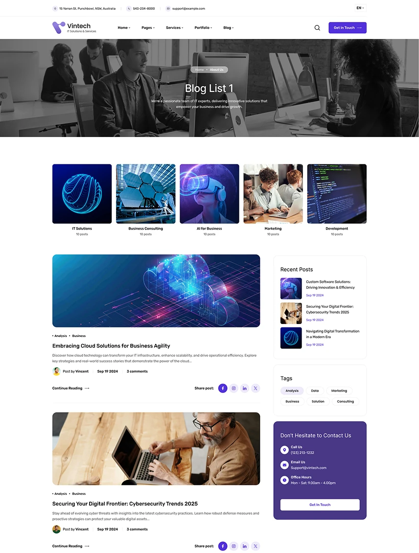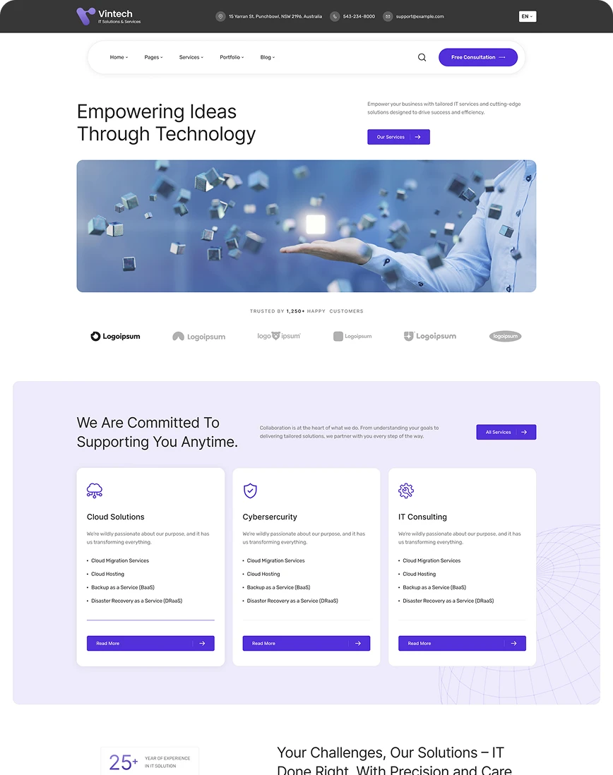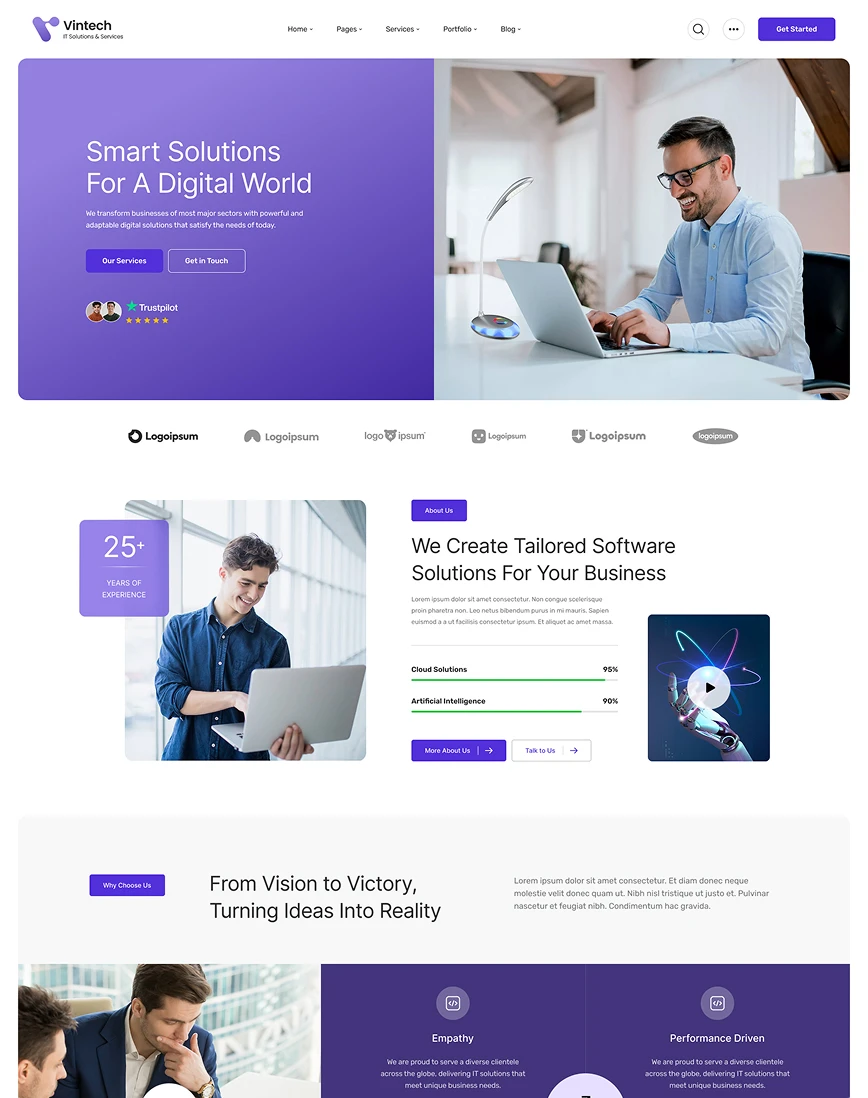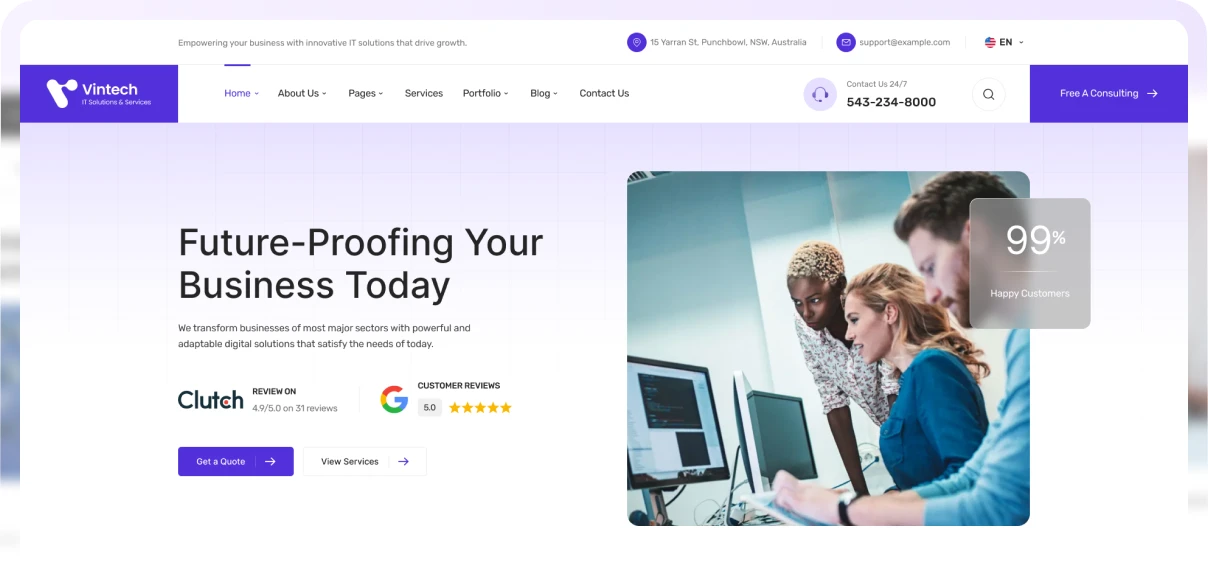 Purchase Vintech today and start to creating your beautiful business website.